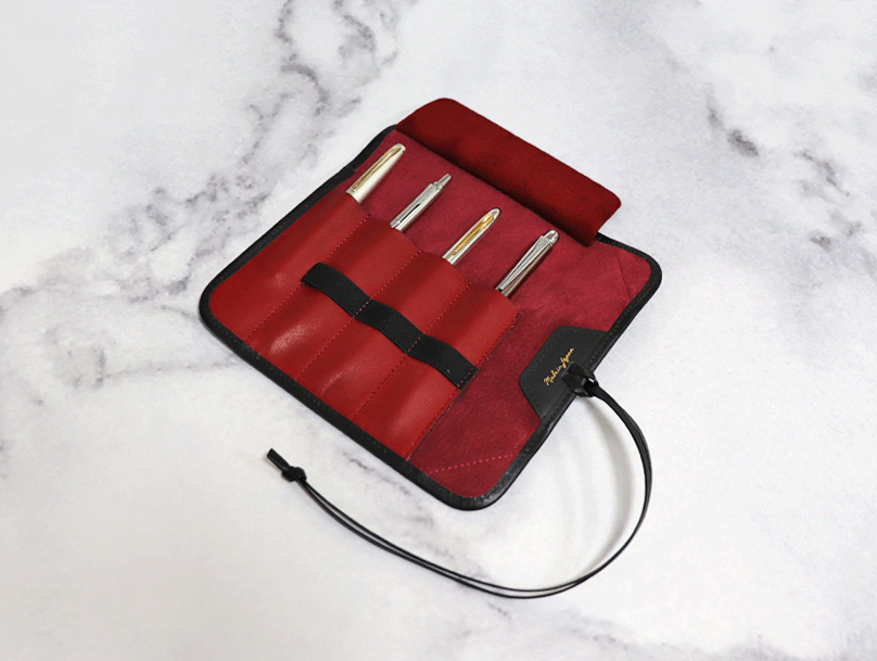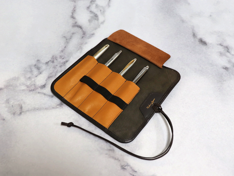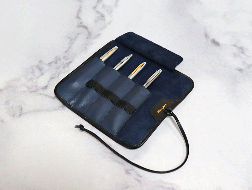 万年筆やボールペンなどを入れ、くるくると巻いて収納していただけます。