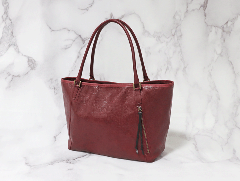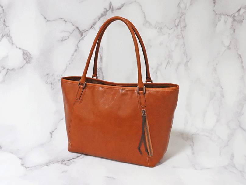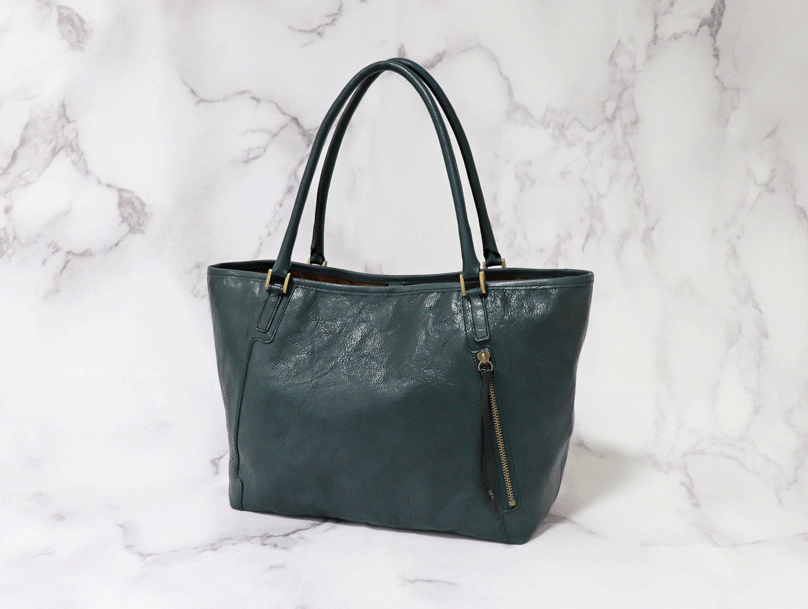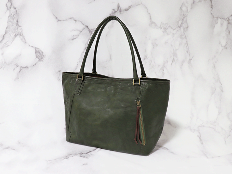 オイルをたっぷり含ませ、シボを出すシュリンク加工と、磨いて艶を出すグレージング加工も施しているので、透明感のある綺麗な色味、風合いが魅力的です。