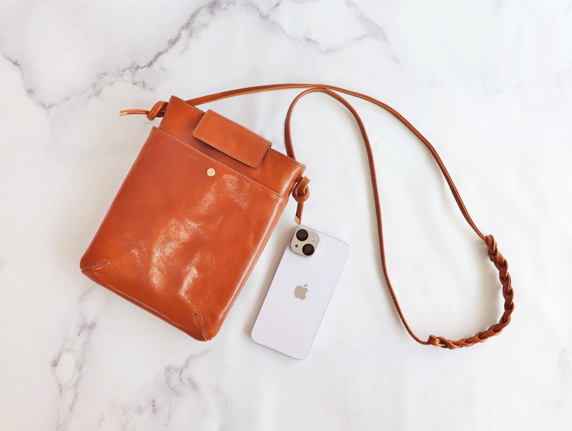 革の三つ編みがアクセントのポシェットです。
