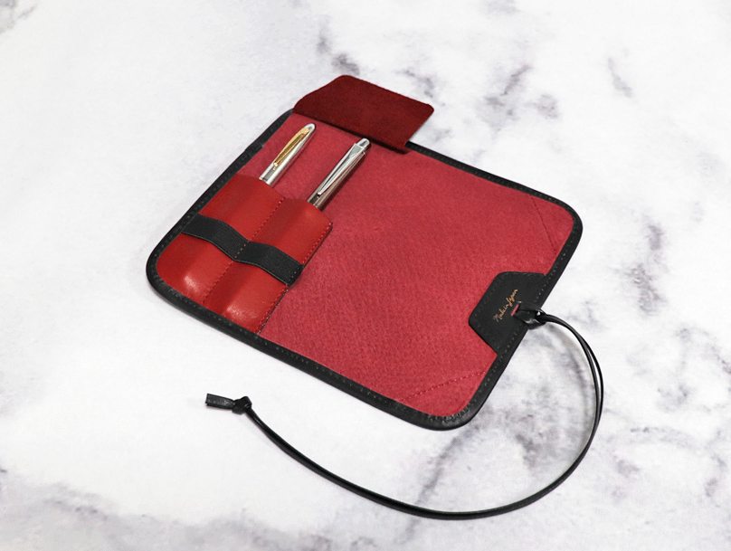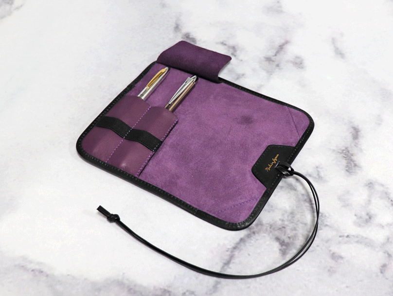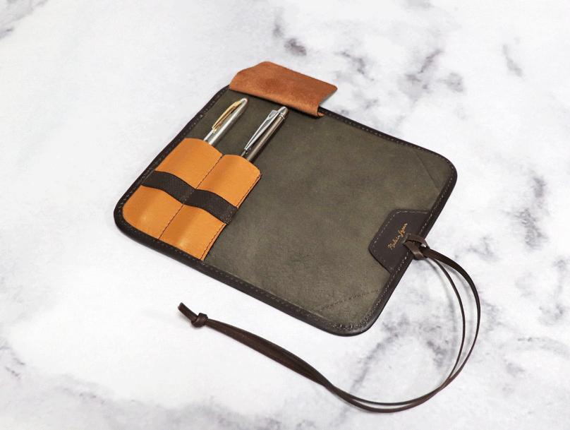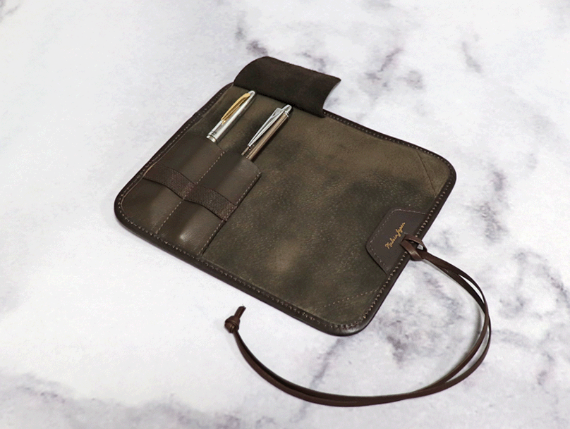 万年筆やボールペンなどを入れ、くるくると巻いて収納していただけます。